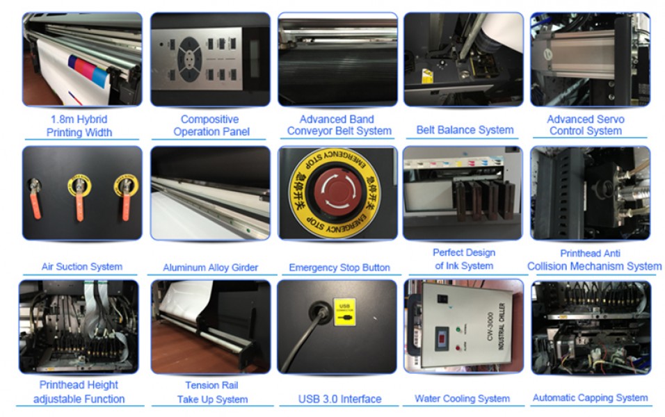 R180 roll to roll and flatbed printer is a new printing machine that combines a flatbed printer with inkjet printer in one machine, along with all features and advantages of a flatbed printer and inkjet printer. continuing XENONS consistent style for superior material, exquisite workmanship and stable production.